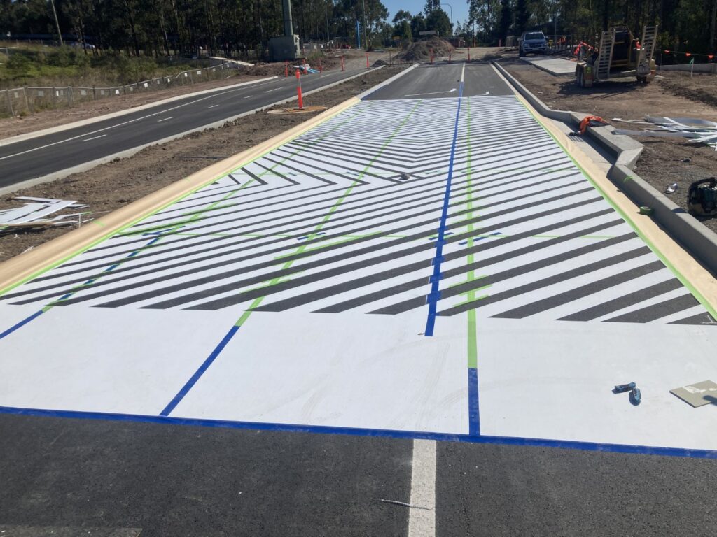Installation was expertly delivered by Brick N Pave using StreetBond, a specialist process where a coloured, textured coating is permanently applied to the road surface. This innovative method ensures durability while allowing for vibrant, detailed designs.